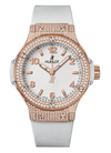 Hublot - Big Bang - 38 MM - Yellow Gold and Diamonds - White Dial - White Rubber Strap - Diamond Bezel - 361.PE.2010.RW.1704