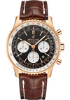 43.00 mm red gold case, 14.22 mm thick, sapphire crystal back, non screw-locked crown with two gaskets, bidirectional bezel with slide rule, cambered sapphire crystal with glareproof treatment on both sides, black dial, Breitling 01 self-winding movement with date in dial aperture and chronograph function, approximately 70 hours of power reserve, brown croco strap, tang buckle. Water resistant to 3 bars.