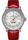 Breitling Navitimer Stainless Steel 35 MM - Red Leather Strap - Mother-Of-Pearl Dial - A17395211A1P6