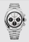 Elegant yet casual, this steel watch features a column-wheel chronograph with black counters that contrast its silvered dial, making it very easy to tell the time and conveying a touch of originality to the traveler. Its openworked caseback reveals an oscillating weight in 22K gold featuring decoration inspired by the wind rose, a tribute to the spirit of travel. Thanks to its clasp and system of three easily interchangeable straps – steel, leather, and rubber – the watch can be personalized according to the owner’s wishes.