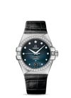 Omega Constellation Stainless Steel 35 MM - Black Leather Strap - Diamond Bezel - Blue Diamond Dial - 123.18.35.20.56.001