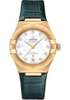 Omega Constellation Yellow Gold 29 MM - Green Leather Strap - Pearled Mother-Of-Pearl Diamond Dial - 131.53.29.20.55.001