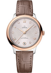 Omega De Ville Rose Gold and Stainless Steel 34 MM - Taupe Brown Leather Strap - Rose Silvery Dial - 434.23.34.20.52.003