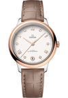 Omega De Ville Rose Gold and Stainless Steel 34 MM - Taupe Brown Leather Strap - Silvery Dial - 434.23.34.20.52.001