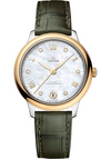 Omega De Ville Yellow Gold and Stainless Steel 34 MM - Olive Green Leather Strap - White Mother-Of-Pearl Dial - 434.23.34.20.55.002