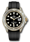 Rolex Yellow Gold Yacht-Master Watch - Off-Catalogue - 42 MM - Oysterflex Strap - Black Dial - Diamond Bezel - 226668TBR bk