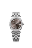 36mm Oystersteel case, screw-down steel back, screw-down crown with twinlock double waterproofness system, diamond bezel, scratch-resistant sapphire crystal with cyclops lens over the date, dark gray dial, Roman numerals with diamond set 6 and 9, Rolex calibre 3235 perpetual self-winding movement with center hour, minute and seconds hands, instantaneous date at 3 o'clock with rapid setting, and stop-seconds for precise time setting, approximately 70 hours of power reserve, Jubilee bracelet with five-piece links, folding Oysterclasp buckle with Easylink 5mm comfort extension link. Waterproof to 100 meters.
