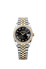 36mm yellow Rolesor case with Oystersteel monobloc middle case, screw-down steel back, screw-down 18K yellow crown, 18K yellow diamond bezel, black dial, Roman numerals, Rolex calibre 3235 self-winding movement with date at 3 o'clock, approximately 70 hours of power reserve, yellow Rolesor Jubilee bracelet with five-piece links, folding Oysterclasp buckle with Easylink 5mm comfort extension link. Waterproof to 100 meters.