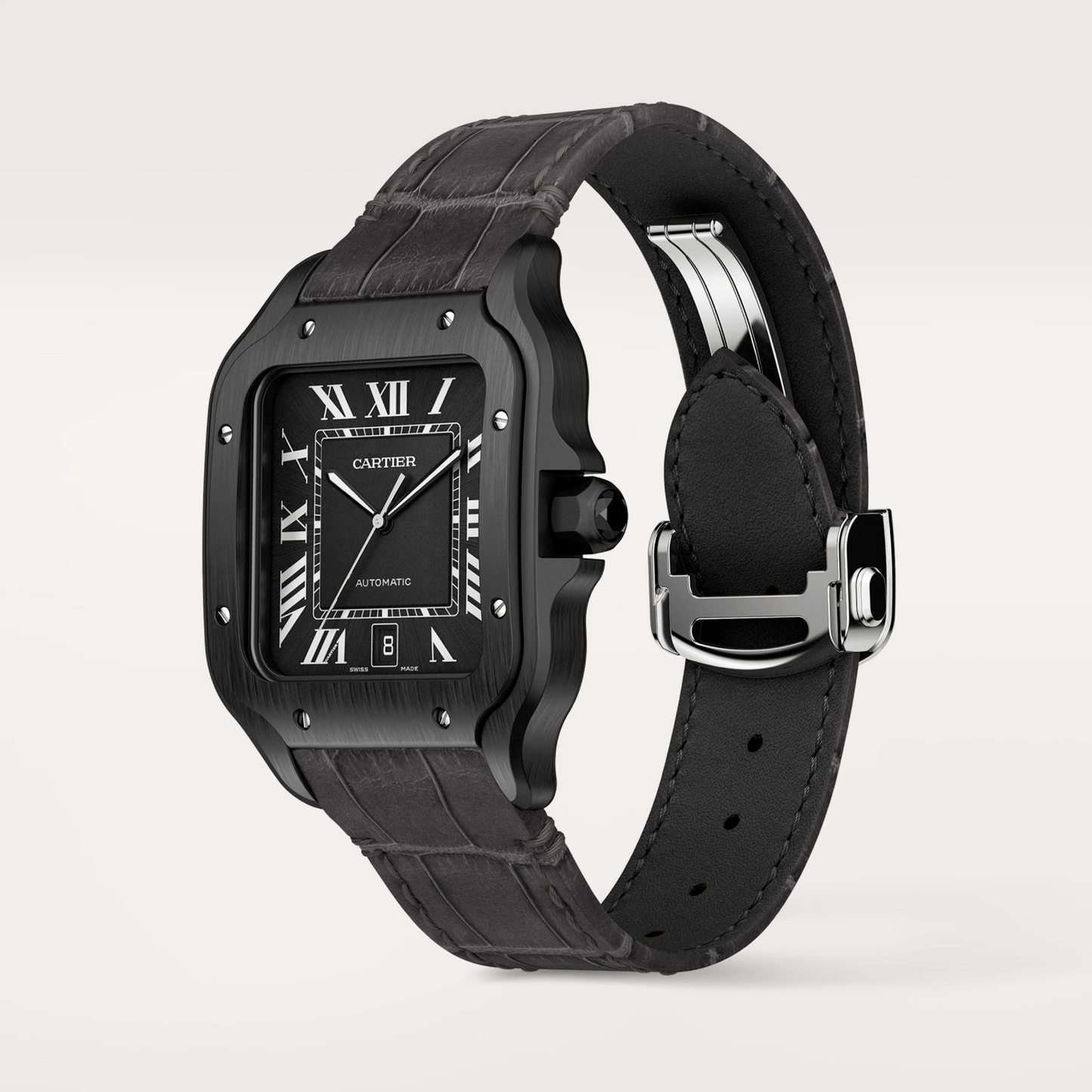 Cartier Santos de Cartier Stainless Steel 39.8 MM (Large Model) - Black Leather Strap - Black Dial - WSSA0039