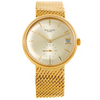The Patek Philippe Calatrava Vintage Automatic 18k Yellow Gold Watch 3514 is a distinguished timepiece designed for men. It features an automatic self-winding movement, meticulously adjusted to heat, cold, isochronism, and five positions, ensuring exceptional accuracy. The movement includes a gold rotor and is stamped with the prestigious Geneva Quality seal. With 37 jewels and caliber 27-460, this watch is crafted for precision and reliability. The 18k yellow gold case measures 33.5 mm and showcases the iconic Patek Philippe logo on the crown. The dial is elegantly designed with a satin silvered finish, raised gilt baton hour markers, outer gilt dot minute divisions, and gilt pointed baton hands. It also includes a small seconds sub-dial at the 6 o'clock position and a gold-rimmed date calendar at 3 o'clock. The watch comes with an 18K yellow gold integrated bracelet featuring a tang buckle and fits an 8-inch wrist comfortably. In great vintage condition and authenticated as 100% genuine, this watch includes a Patek box but does not come with papers. It has been timed to precision on a Witschi watch expert timing machine, demonstrating strong performance and accurate timekeeping.