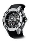 This manual winding movement incorporates a unique direct impulse escapement, beating at 36,000 vph and linked to a double barrel for exceptional timing regulation. The design, akin to the precision of Formula 1 engineering, eliminates the casing ring, fixing the movement to the chassis with titanium screws and silicon blocks. The four-part case, assembled with 12 titanium screws, features separate lugs and achieves water resistance up to 50 meters.